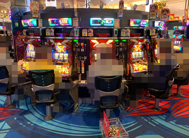 大にぎわいとなっているパチスロでは、『マイジャグラーV』がとくに盛況!