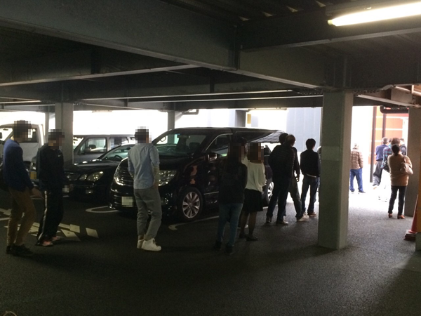 この日の朝イチにホール前に集まっていた人数は20人前後。雨が降り肌寒かったこともあり、多くのプレイヤーは駐車場の車内で待機していたようだ。