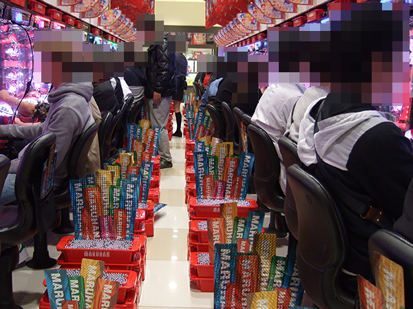 パチンコ・パチスロともに低貸し玉コーナーもたくさんの人でにぎわっていた。