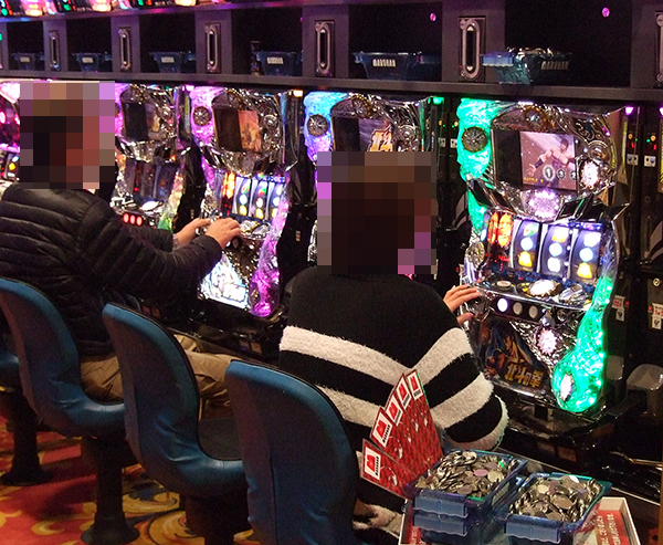 ホール内はたくさんの人でにぎわっており、とくにパチンコの盛り上がりが印象的。快活な笑顔を浮かべているプレイヤーも多く、心から遊技を楽しめていることがハッキリと伝わってきた。
