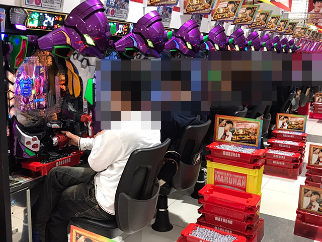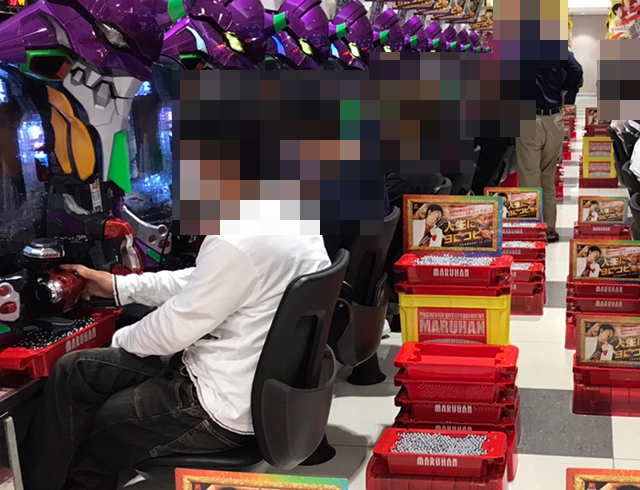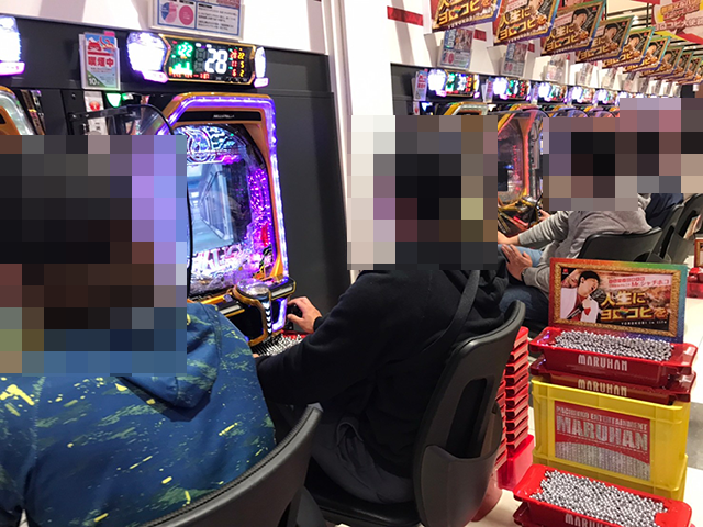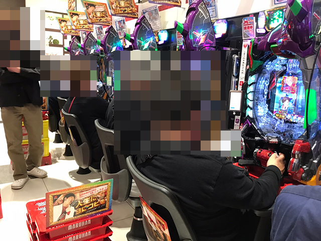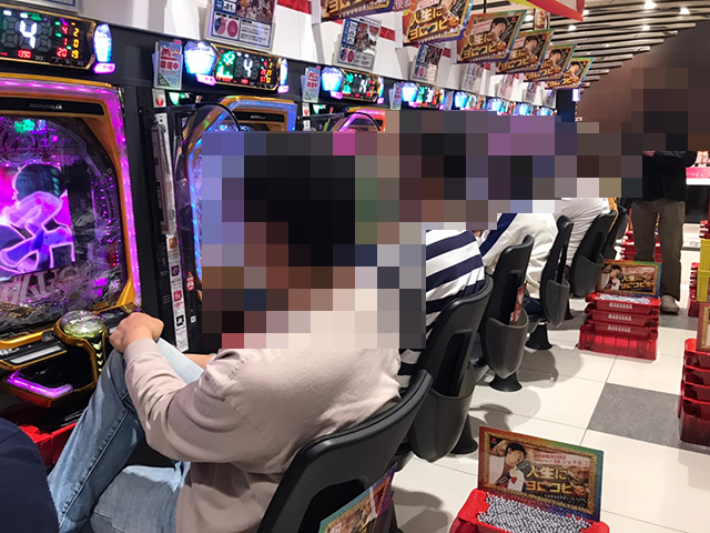 取材中は10台すべてが稼働しており、夕方頃には10箱以上の持ち玉で遊技をおこなっている姿を確認した。