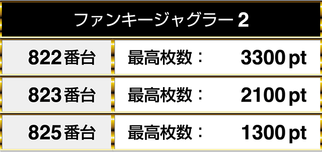 『ファンキージャグラー2』に3300pt、2100pt、1300ptが並ぶ!