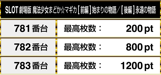 『沖ドキ!DUO』と『SLOT劇場版 魔法少女まどか☆マギカ[前編]始まりの物語/[後編]永遠の物語』は3台が並んでプラスpt!