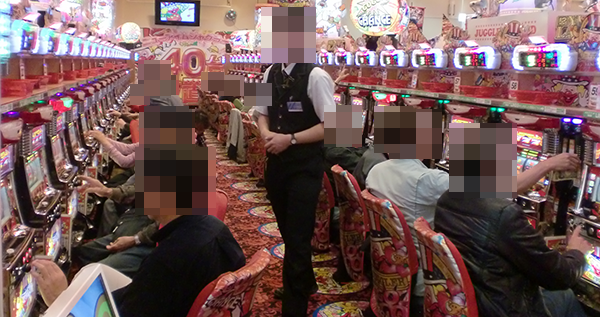 パチスロのなかで、ひときわ盛り上がりが感じられたのはジャグラーシリーズ。とくに「ニューアイムジャグラーEX」には空き台もほとんど見当たらず、楽しそうな笑顔もあちこちでみられた。