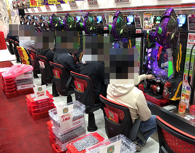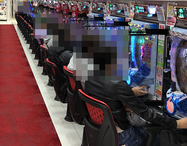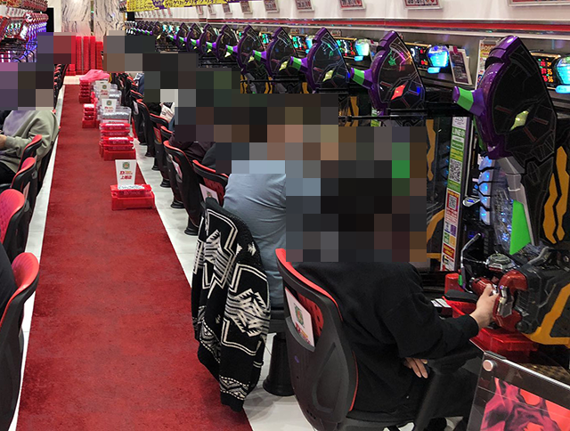 取材時は満席となっており、大箱2箱以上で遊技をおこなっているプレイヤーが4名いた。