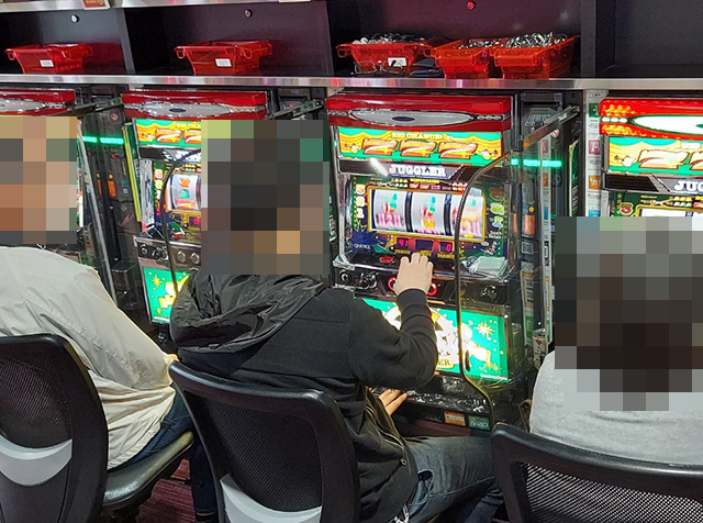にぎわっている場所が多いなかで、とくに盛り上がっていたのが『マイジャグラーV』。