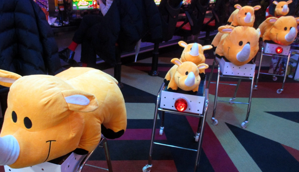 ホール内の様子をみてみると、パチンコ・パチスロともにたくさんのプレイヤーが集まっており、にぎやかな状況。ジャグラーシリーズのシマにはかわいいツノッチのぬいぐるみが置いてあったことも印象に残っている。
