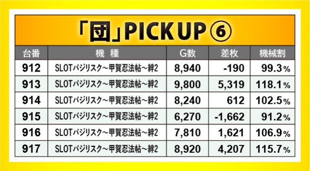 『SLOTバジリスク~甲賀忍法帖~絆2』でも6台横並びの好況スポットが存在し、4~5千枚OVERの大盛り上がりを確認できる。そして『押忍!番長ZERO』においても、3~4千枚OVERが発生しており、いずれも消化されたゲーム数が多いことから、相当な手ごたえを感じられたことが分かるだろう。人気機種でも「団」の力が発揮され、ファンに笑顔をもたらしていたのは間違いない。