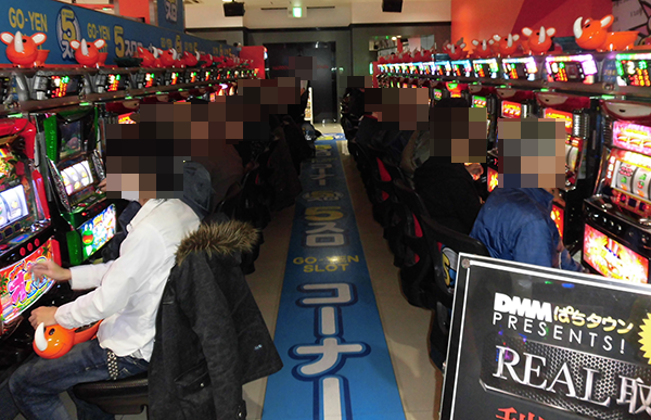 15時頃になると、パチンコもパチスロもたくさんのプレイヤーでにぎわいをみせていた。