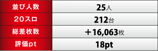 今回、20スロでは全台トータルで+16,063枚を成し遂げ、見事初陣を勝利で飾った。前述した通りパチンコ&パチスロ店の激戦区にあってプラス差枚数&評価ptを残したことは立派の一言。しかし、他の強豪店に対抗するにはもっとドデカい出玉に期待したい!