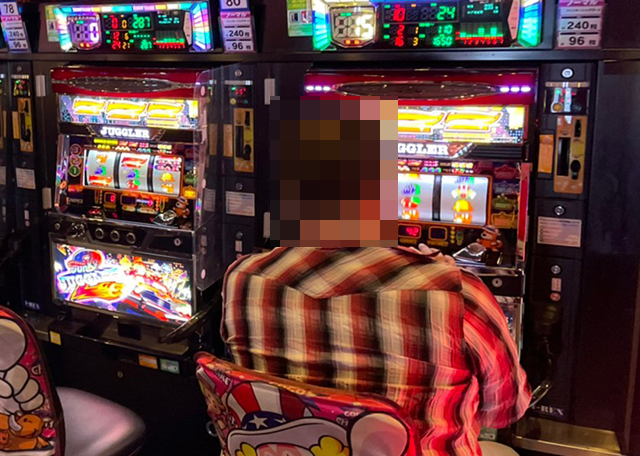 店内をみているあいだには、『マイジャグラーV』でも笑顔のプレイヤーを目にしている。