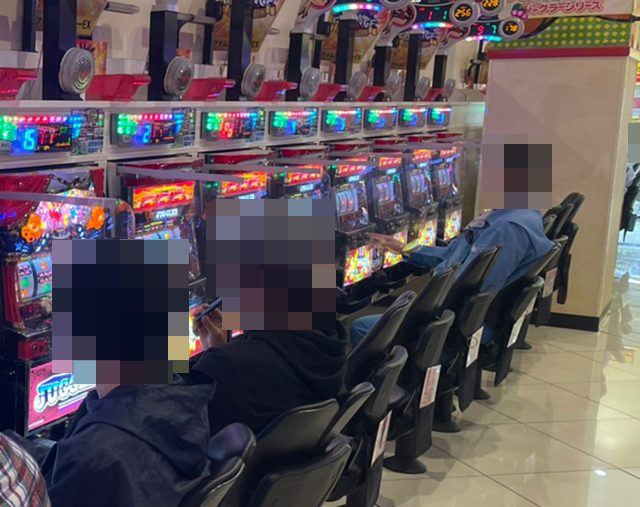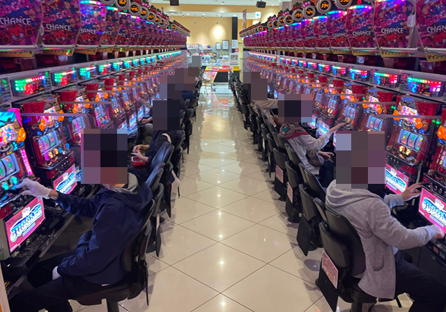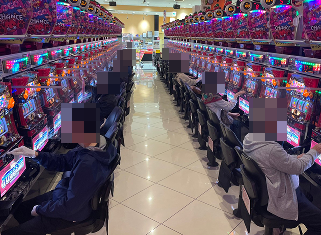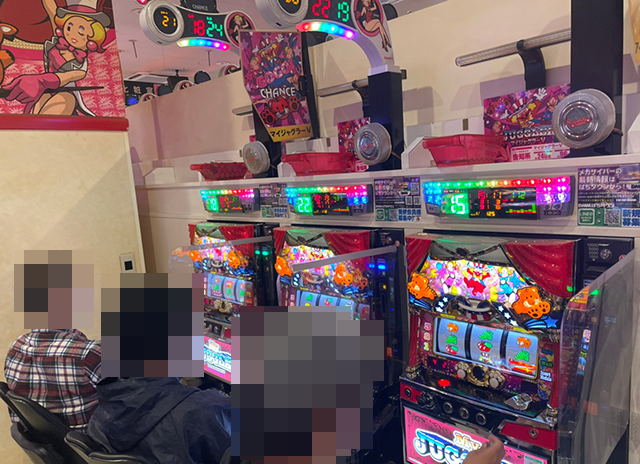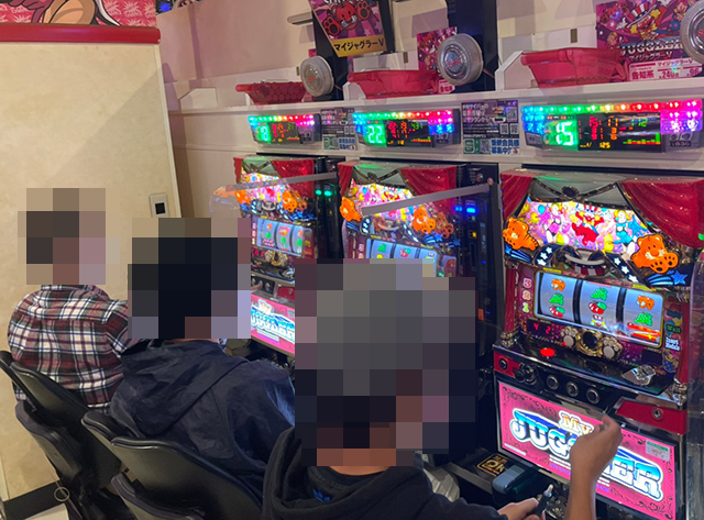 ジャグラーシリーズだけでなく、さまざまな場所がにぎわっていた「メガサイバーパチンコ新鎌ケ谷店」。