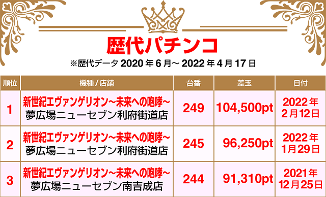 1種2種混合タイプの機種が多いなかで、ST機である『新世紀エヴァンゲリオン~未来への咆哮~』の3台が食い込んだ。
