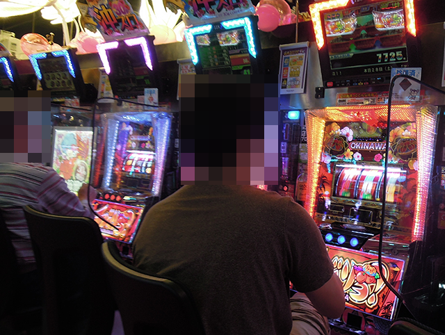 設置されている沖スロの機種は多く、あちこちに笑顔が広がっていた。