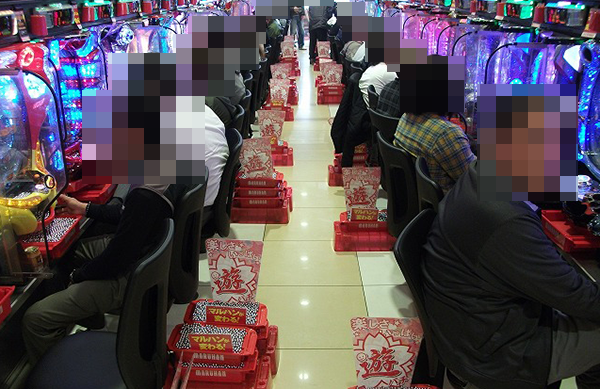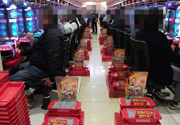 朝イチの様子をみると、4円パチンコの海物語シリーズや20円パチスロのジャグラーシリーズといった定番機種が注目を集めていた。