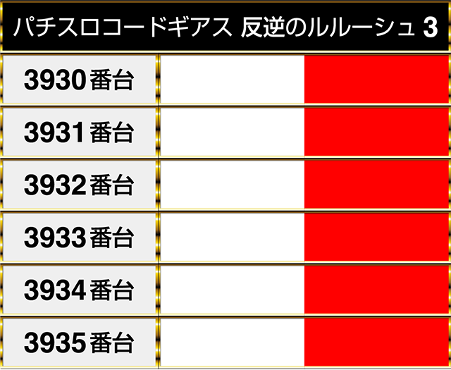『パチスロコードギアス 反逆のルルーシュ3』は6台が並んでプラスpt!!