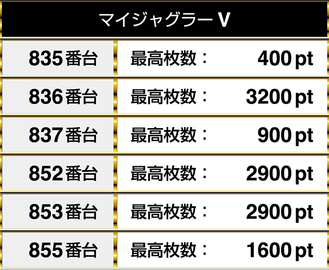 最終的には835番台から837番台までにプラスptが並び、そのうちの1台は3000ptオーバー!!