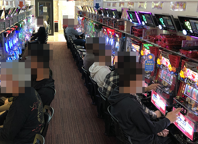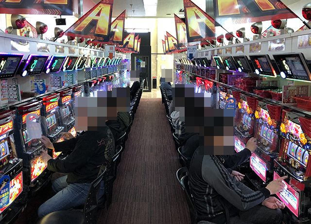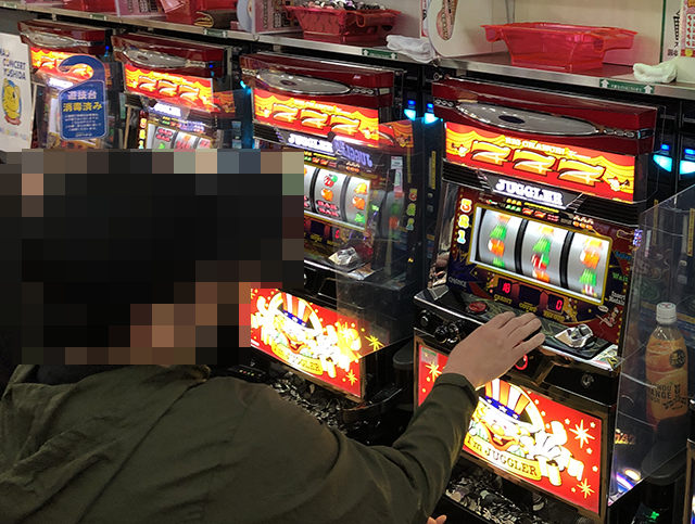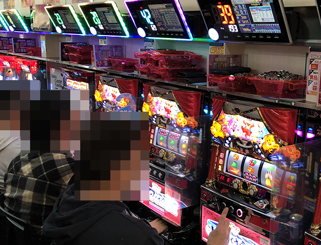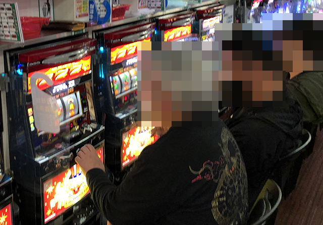 設置されている4台すべてが稼働していた『マイジャグラーV』が大にぎわい!