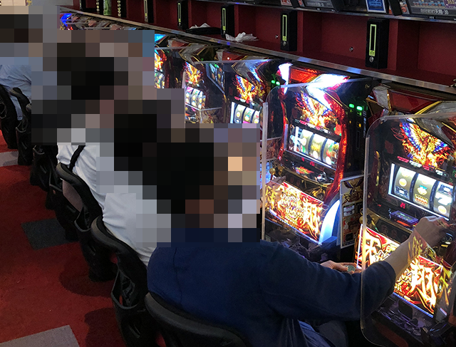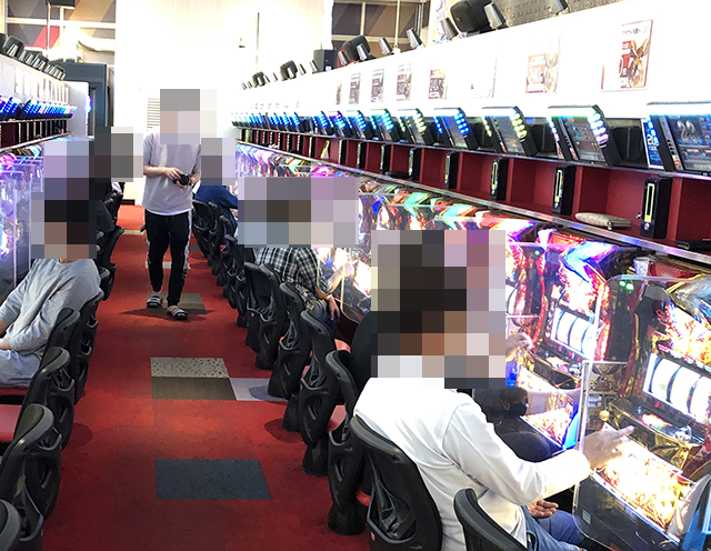 15時半ごろに店内をみてみると、沖スロをはじめ、さまざまな機種に楽しそうな光景が広がっていた。