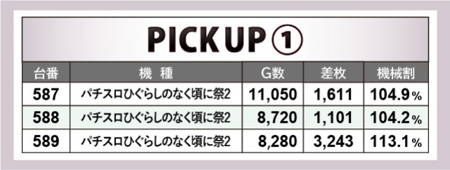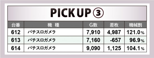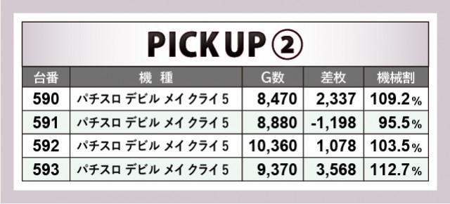『パチスロひぐらしのなく頃に祭2』『パチスロ デビル メイ クライ 5』『パチスロガメラ』の3機種は、いずれも開店からじっくりと打ち込まれた機種たちだ。何度も言うようだが、万回転に到達しているからには相応の理由が存在する。各機種で最高の差枚数を記録することができなかったが、しっかりとプラス域で終えているため、遊技していたファンは有意義な時間を過ごしていたに違いない。