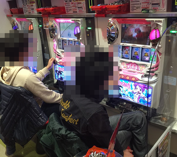 午後の20円パチスロをみると、朝から人気の「バジリスク~甲賀忍法帖~絆」や「沖ドキ!-30」、そこに「SLOT魔法少女まどか☆マギカ」を加えた3機種がひときわ大きく盛り上がっていた。