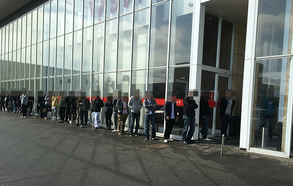 朝イチは入場整理券を受け取っていたプレイヤーと一般入場を合わせて50名以上が集合。また、車のなかで開店を待つプレイヤーの姿もあった。