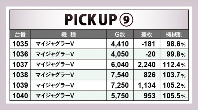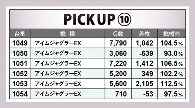 『マイジャグラーV』『アイムジャグラーEX』の両機種では、よりゲーム数が稼がれることで全台プラス差枚を記録した可能性があっただろう。だがいずれにても、コンスタントなボーナス当選によって充実のひと時を過ごせたはずだ。特にシリーズの中でも秀でた人気を誇る『マイジャグラーV』は、ゲーム数・差枚数ともに好記録であるため、今後とも注目したいエリアとなっている。