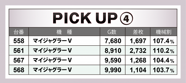 まずは優秀30台のPICK UPから。後述する好調4機種以外では、+4千枚近い差枚数の台を輩出した『パチスロ戦姫絶唱シンフォギア 勇気の歌』、2台合計で+5千枚弱となった『SLOT劇場版 魔法少女まどか☆マギカ[前編]始まりの物語/[後編]永遠の物語』の出玉が光った。