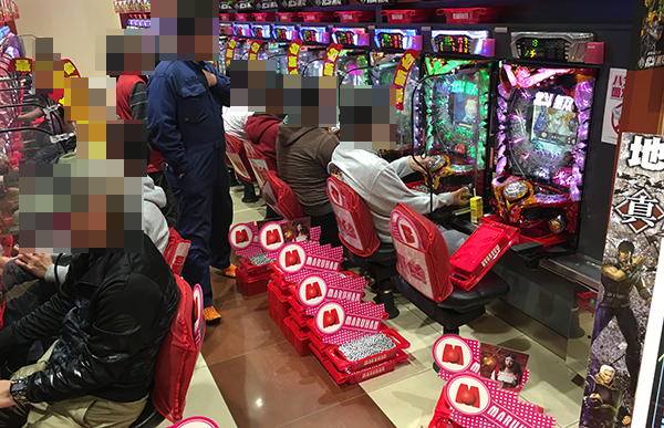 開店直後の4円パチンコでは、新台の「ぱちんこCR真・北斗無双」がほぼ満席と大人気。