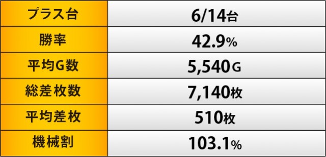 目を惹くのは設置台数の多い沖スロ機種の活躍で、『沖ドキ!DUO-30』『ハナハナホウオウ~天翔~-30』『チバリヨ-30』はいずれも勝率50%以上!特に『チバリヨ-30』からは5千枚OVERが発生しており、『沖ドキ!DUO-30』も負けじと3千枚OVERが複数見られる好況となった。