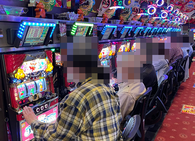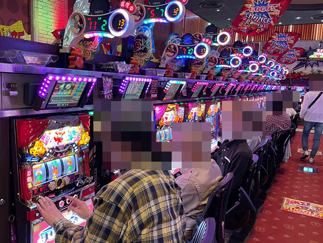 楽しげなプレイヤーが並んでいる光景は、パチスロ全体でみてもとくに鮮やかであった。
