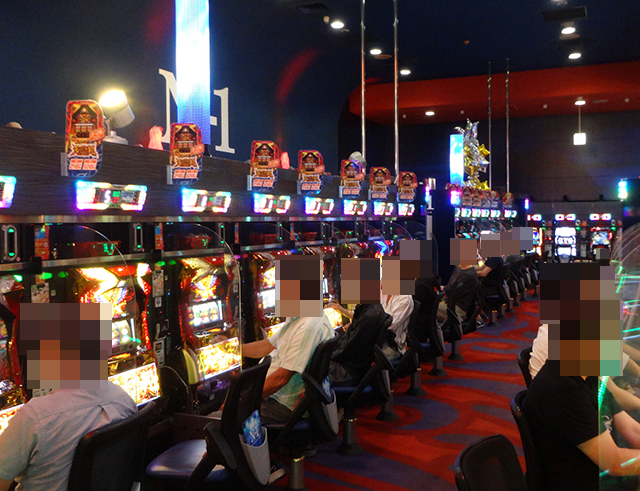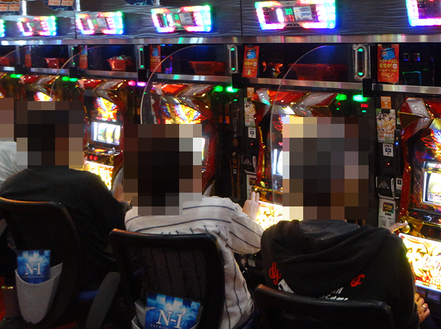楽しげなプレイヤーが並ぶ光景は、パチスロ全体でみてもとくに目立っていた。