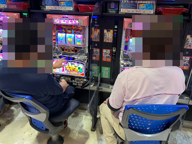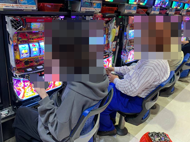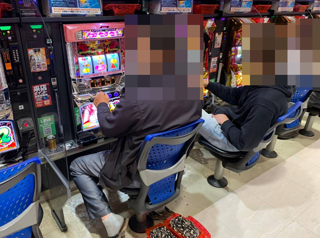 14時過ぎには4名が座っており、3箱や1箱の持ち玉で遊技をおこなっている姿があった。