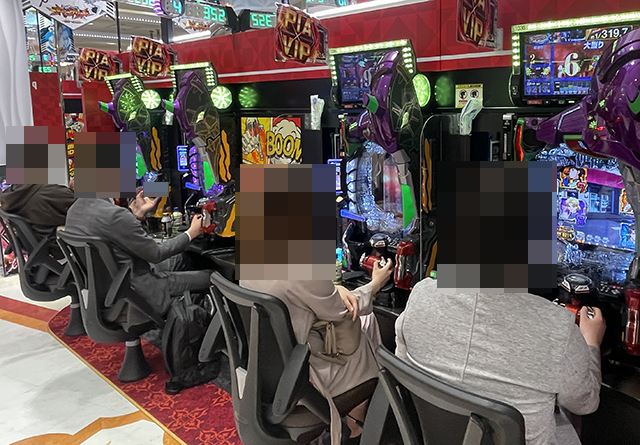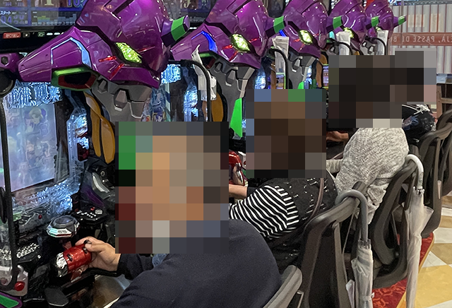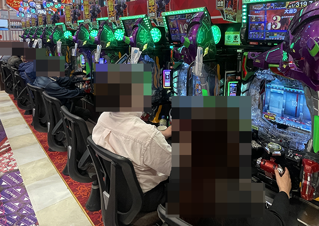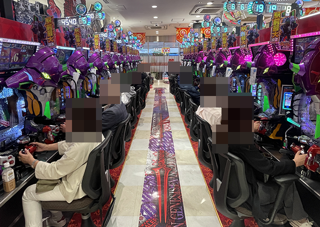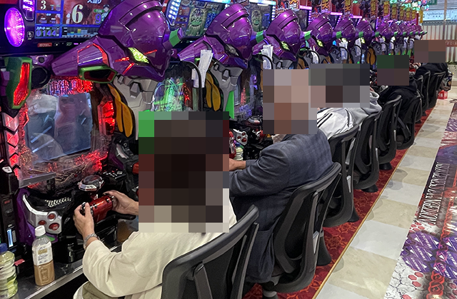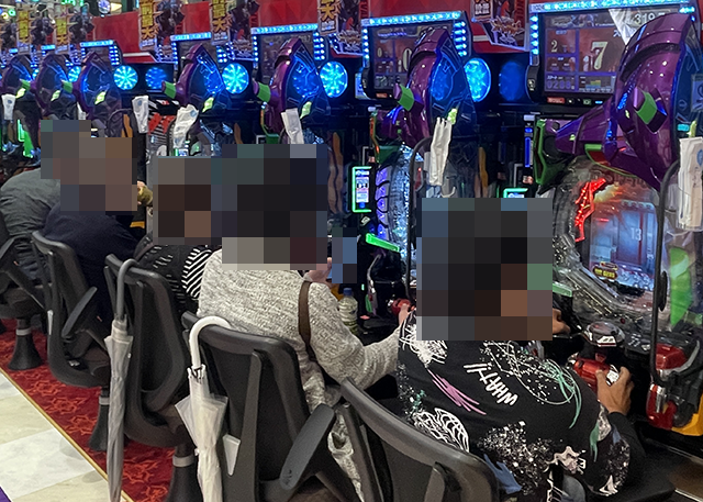 夕方頃のパチンココーナーには、多くのプレイヤーが集合。
