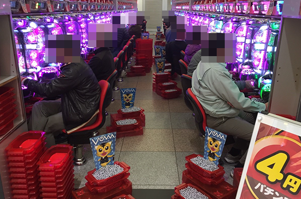 15時頃の4円パチンコをみると、「ぱちんこCR真・北斗無双」がほぼ満席と大盛況。稼働率だけでなく、満足度の高さも際立っていたように思う。