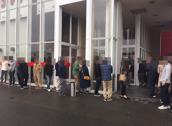 この日の朝の並びには約70名が集合。あいにくの悪天候であったが屋根のある場所での整列だったため、濡れることなく開店を待つことができていたようであった。