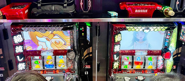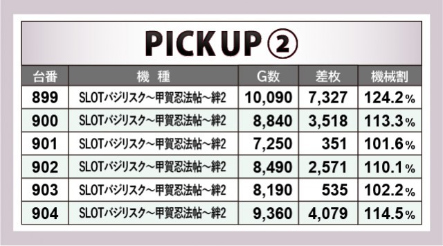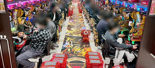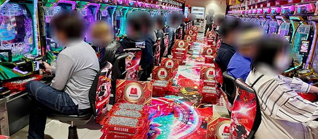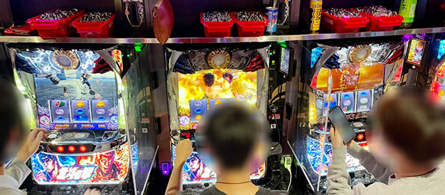 改めて活躍した機種を取り上げると、いずれも朝から閉店までしっかり回されていた様子が窺える。『SLOTバジリスク~甲賀忍法帖~絆2』に至っては万回転OVERを達成し、もちろん他の台でも相当な手ごたえを感じられたことだろう。6台横並びの好況スポット、さらに全台から熱気が噴出されていた様子から、遊技していたファンはレバーを叩きながら、恍惚の表情を浮かべていたに違いない。