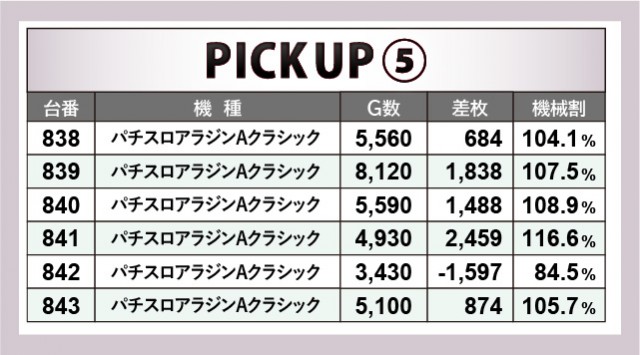 人気AT機群が活躍すれば、沖スロやノーマル機も負けじと好パフォーマンスを披露する。ゲーム数・差枚数の数字こそ劣るが、それでも同等の可能性を感じられる内容だったのは間違いない。ゲーム数が少ない台に関して言えば、より回転数を重ねることによって、大きく異なった記録が誕生したであろう。