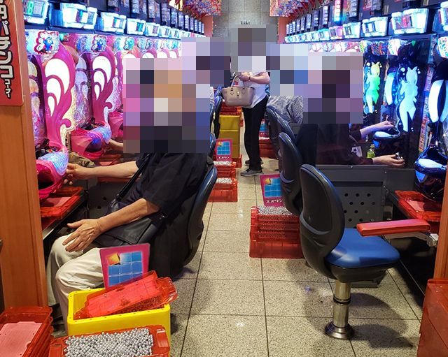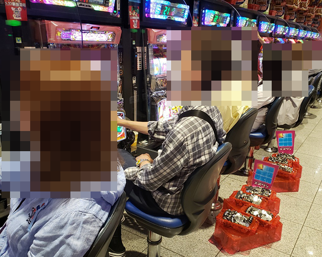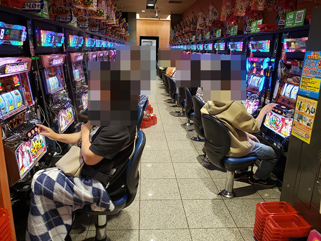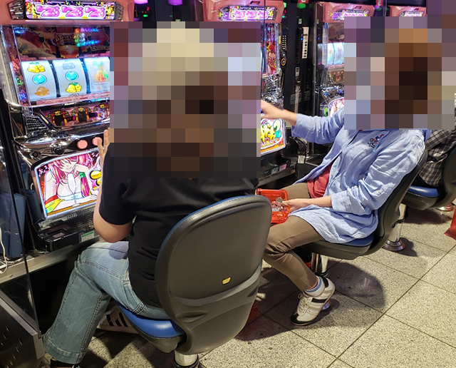 15時半ごろには8台あるすべてが稼働しており、半数となる4台が1箱以上の持ち玉となっていた。