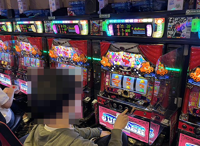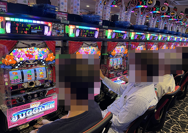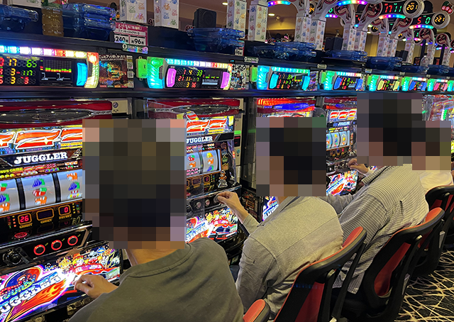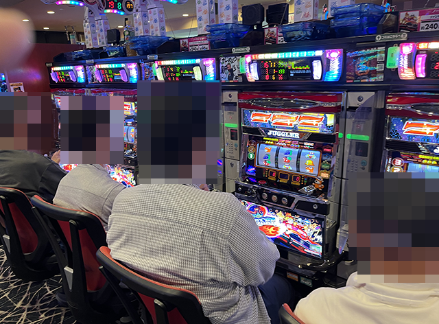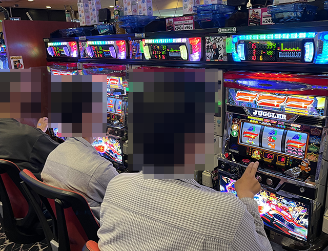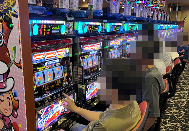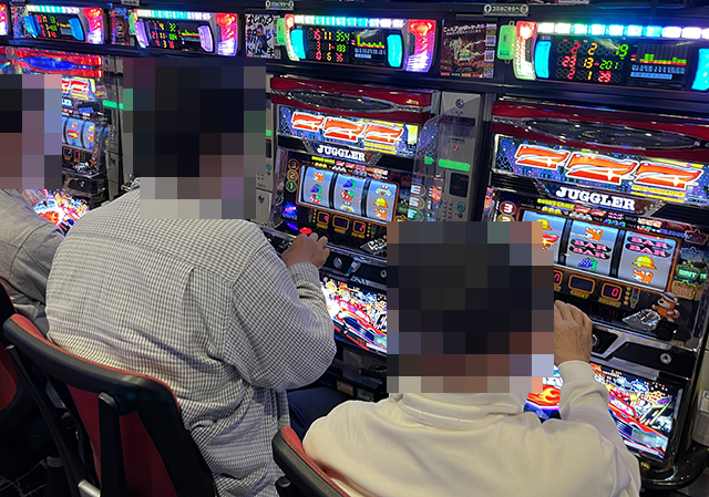 『マイジャグラーV』で遊技をおこなっているプレイヤーの表情も明るい。