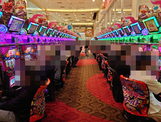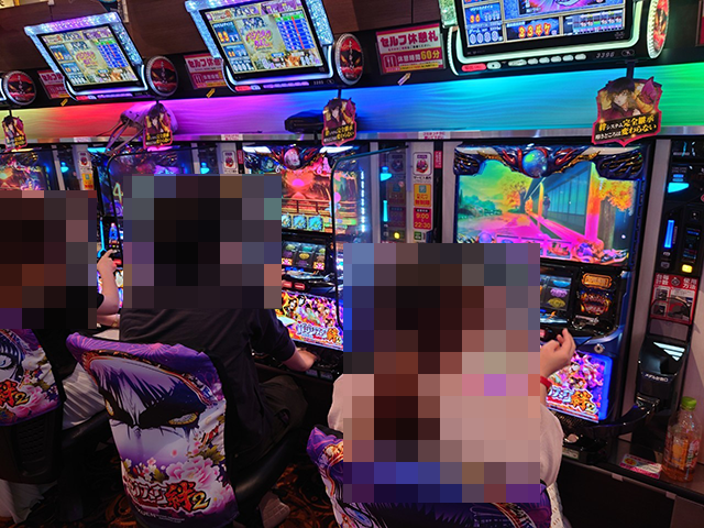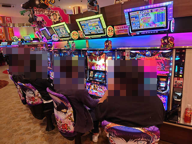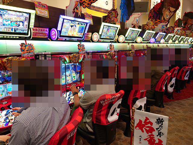 「マイジャグラーV」や「押忍!番長ZERO」で、うれしそうに遊技をおこなっているプレイヤーを確認している。