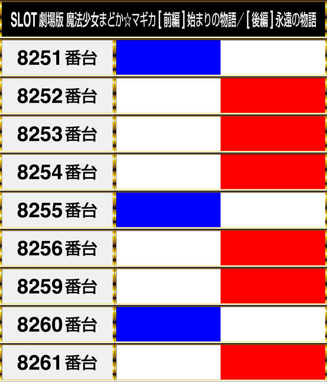 11台が設置されている『SLOT劇場版 魔法少女まどか☆マギカ[前編]始まりの物語/[後編]永遠の物語』は6台がプラスptを記録した。