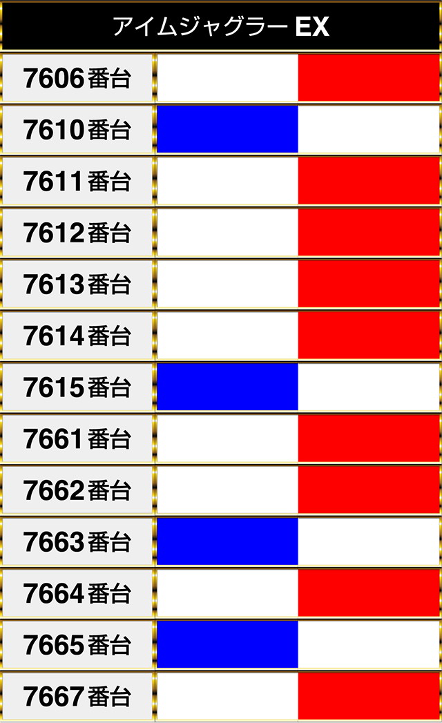 『アイムジャグラーEX』は18台のうち、半数となる9台がプラスpt!