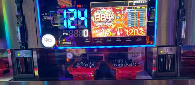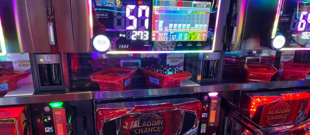 また、この日は4機種4か所の横並びスポットが出現。中でもハイスコアを残したのが同店で44台とトップクラスの設置数を誇る『押忍!番長ZERO』。4台横並びの中には+7千枚近くを叩き出した台も現われ、それ以外のプラス台も加えて7台トータルでは+2万2千枚と大量出玉! その他『パチスロアラジンAクラシック』には+6千枚に迫る勢いの台も!!