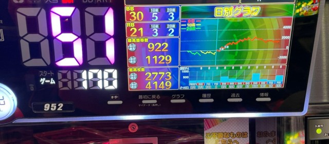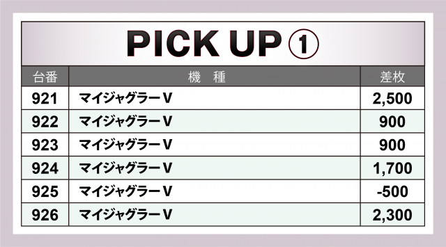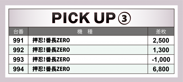 この日、[21.739] スロ309台トータル差枚数はマイナスを記録。PICK UP30台や横並び好況スポットの差枚数、さらには評価ptが22と高い点を考慮すると信じられない結果だが、それだけマイナス台合計の凹みが大きかった&メリハリの付いた営業だったということだろう。「英雄」取材においてもマイナス台の見切りとプラス台への着席は何よりも迅速に、というのが勝利の鉄則と言えるのだ。