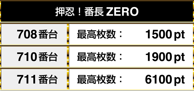『押忍!番長ZERO』の708番台から711番台までが並んでプラスpt!