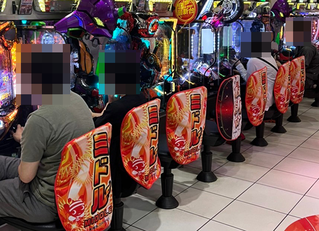 ホールに入って、たくさんのミドルタイプの機種が並ぶシマに目をひかれた。