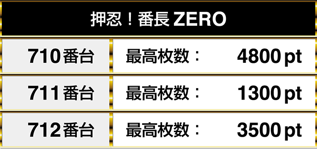 閉店時には710番台から712番台までに4800pt、1300pt、3500ptが並んだ。