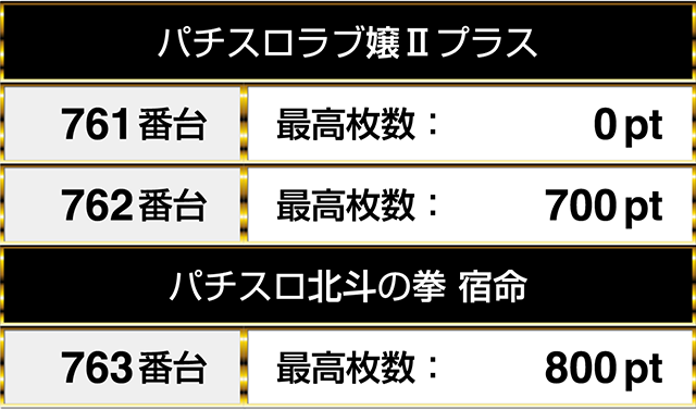 並びで設置された『パチスロラブ嬢Ⅱプラス』と『パチスロ北斗の拳 宿命』にもプラスptが連なった。