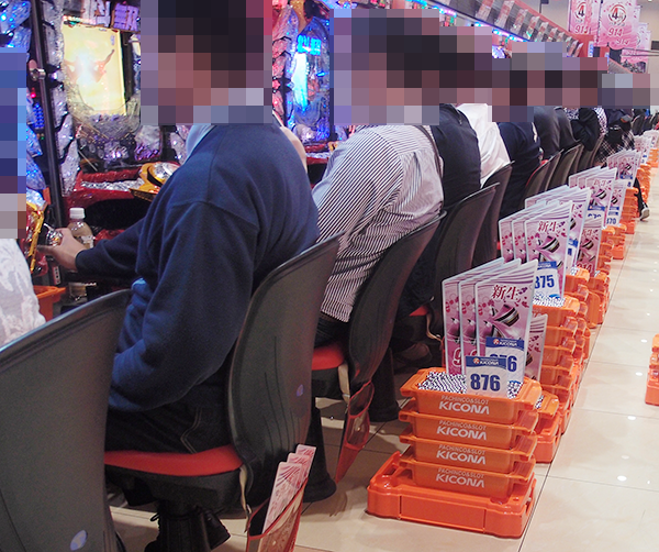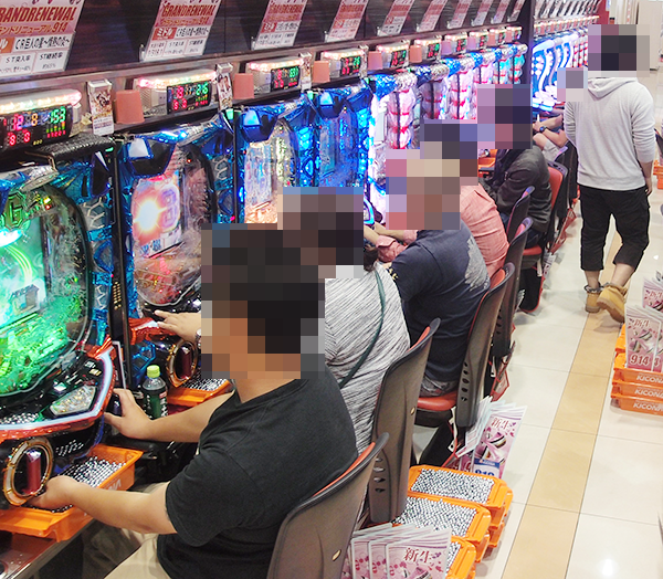 取材日の朝は、開店前から約150名のプレイヤーが集合。プレイヤーたちのホールに対する期待の大きさが伝わってきた。